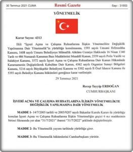 31 TEMMUZ 2021 TARİHLİ İŞ YERİ AÇMA VE ÇALIŞMA RUHSATLARINA İLİŞKİN YÖNETMELİK